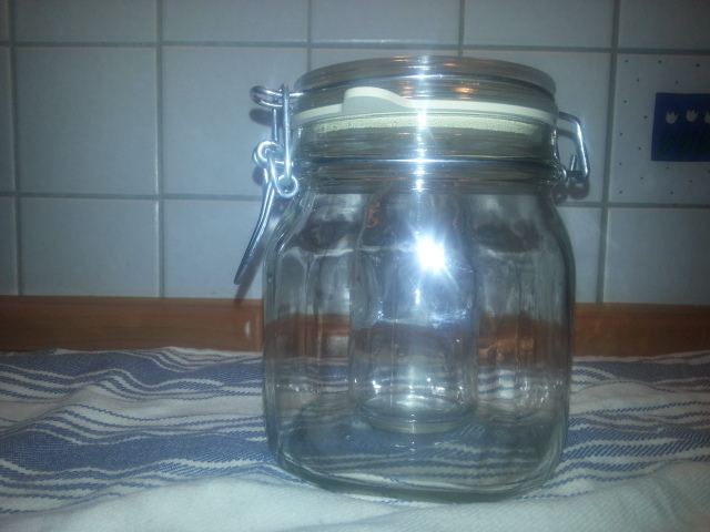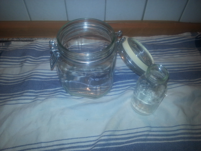 I took 500ml of double distilled water (Room Temp) in a preserving jar filled with swing top (better than screw cap because everything here is made of glass).