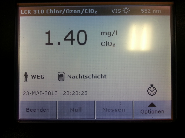 After exactly 24 hr production time, I ended and decanted the CDS in 2x250ml amber glass bottles ....