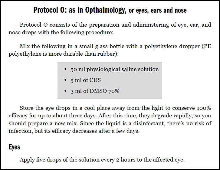 And i'll follow protocol O to treat the eyes and i will add 5ml cds to 50ml of psysiological saline. Is it right?