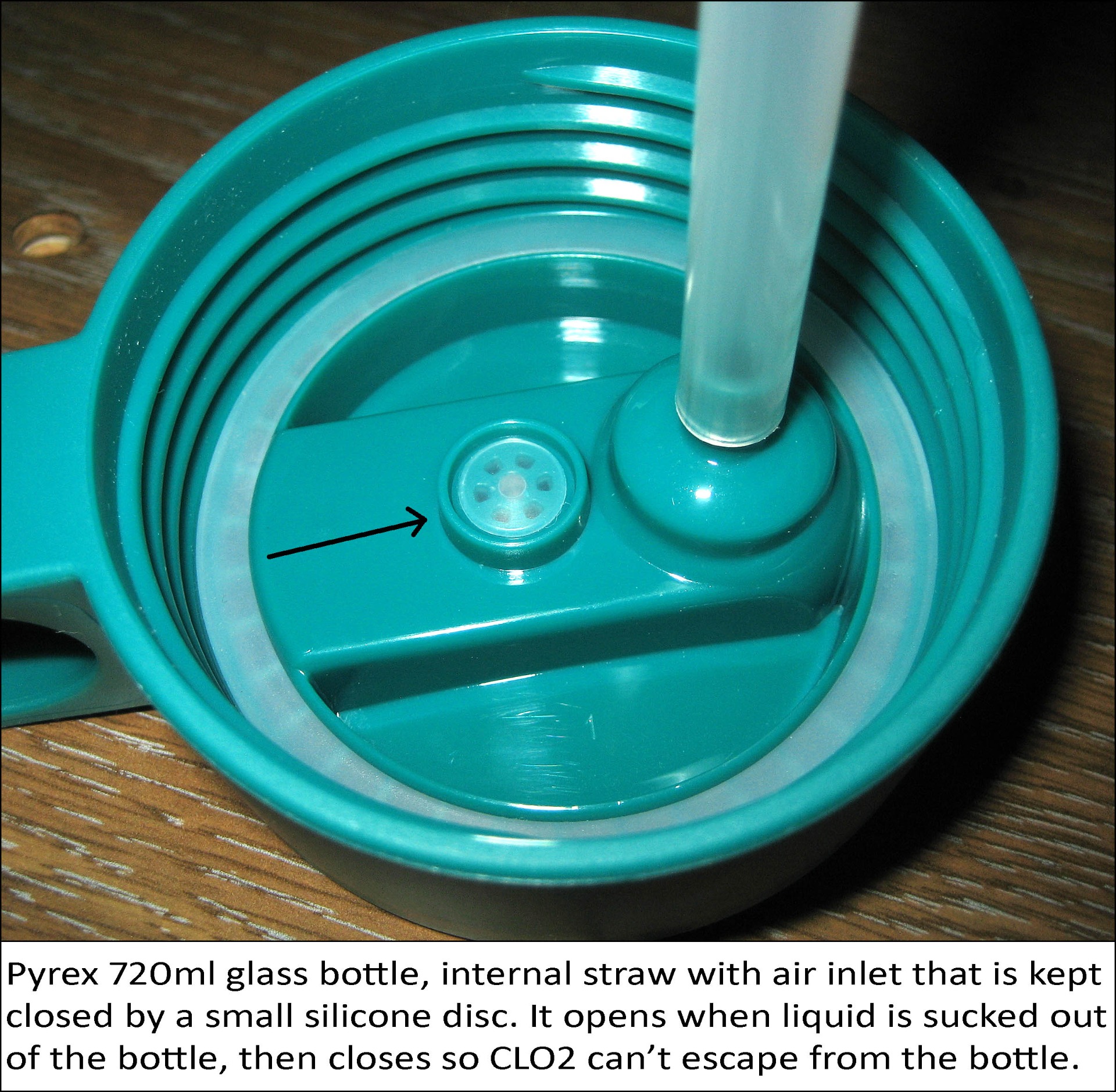 RJi, have you tried a water bottle that uses an internal straw and a silicone popup mouthpiece? You don't have to take off a bottle cap to take out a dose of CLO2.