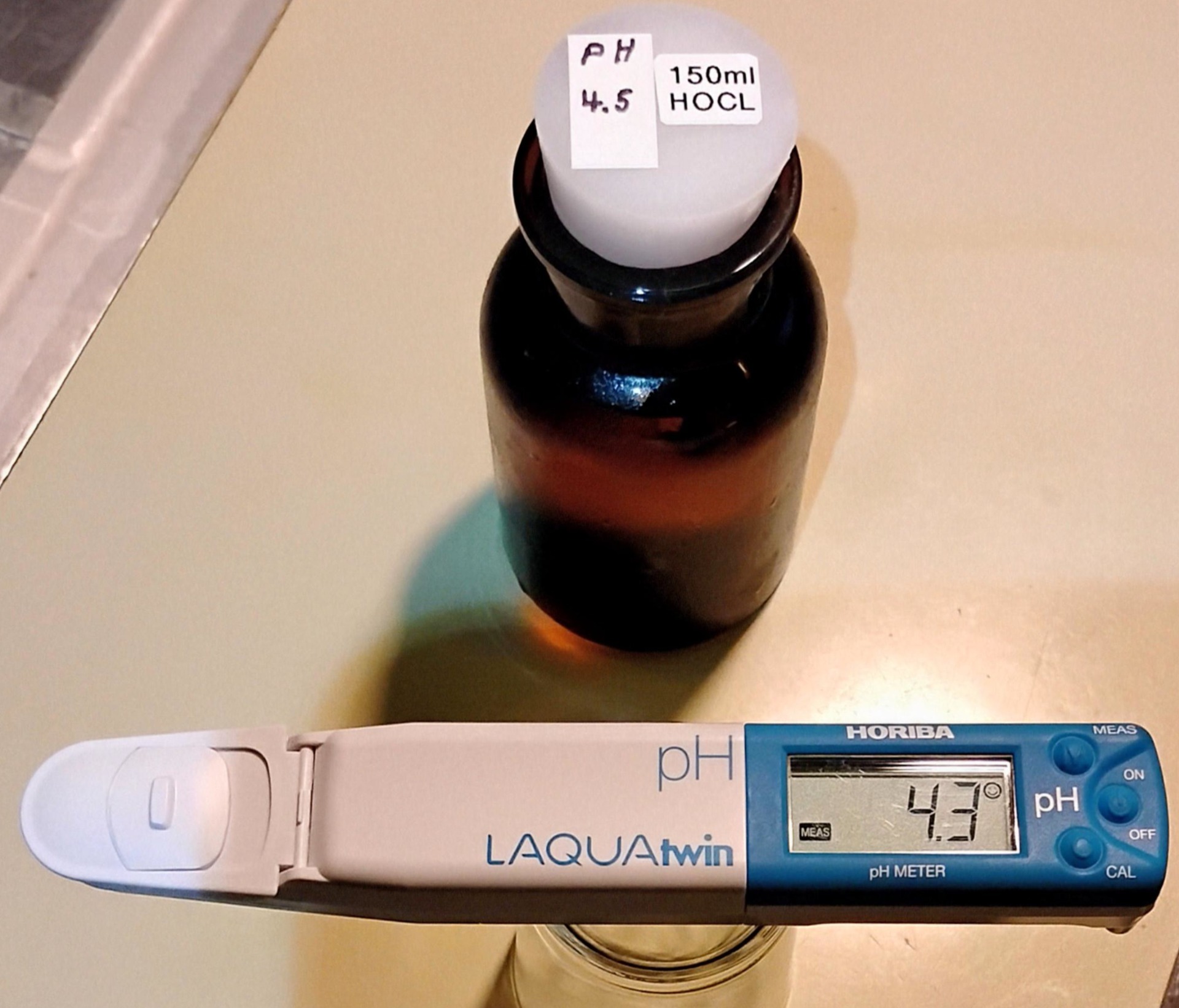 I made some HOCL last night and today I used some and decided to measure the pH, as you can see in this photo I just took.