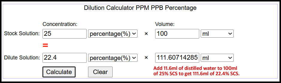 Thank you very much for your response and for the links for the dilution calculator with the helpful notes and the calculations already done! I really appreciate it!