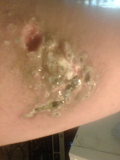pam wrote: yeah, don't remove scab, let it fall off - once this batch of BS has gotten into the eschar, and you've wiped it off, then just keep the eschar moist until the "scab" falls out on it's own. YOu want all those little white "worms" inside to be gone.