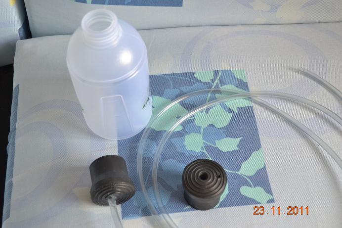 The tubing was from Lowes. Got it in plumbing. The needle to vent with came from the local farm store, it's a veterinary size 14 gauge. This needle was a bit short for my large stopper, so I had to trim the stopper.