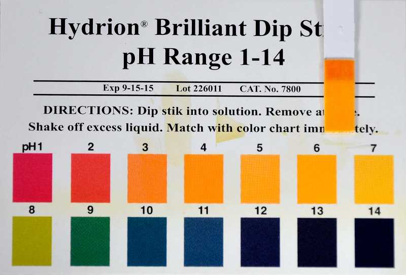 Here is the test strip reading of plain distilled water. Which, as you can see (is subjective) is at about a 4 - 6 Ph level.