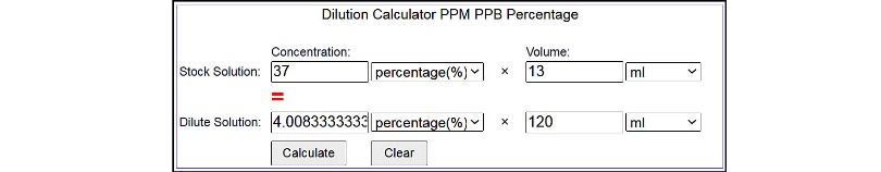 15 grams ÷ 1.9 = 12.6 ml of 37% HCL (round up to 13 ml)