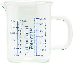 Now below are some pictures of what makes measuring and pouring easier. Please keep in mind though that it doesn't have to be this fancy. I have taken a throw-away plastic cup and marked lines on it with a permanent marker to give me a makeshift graduated cylinder. Having said that, I do think that you should use some kind of glass container with an airtight seal for the container that you'll be mixing all the ingredients in and leaving to sit overnight. And if you multiply the recipe by 4 or any other number, and make a large quantity, then you'll need to pour that out into smaller containers that are also ideally glass - like the ones I show with the orange plastic caps.