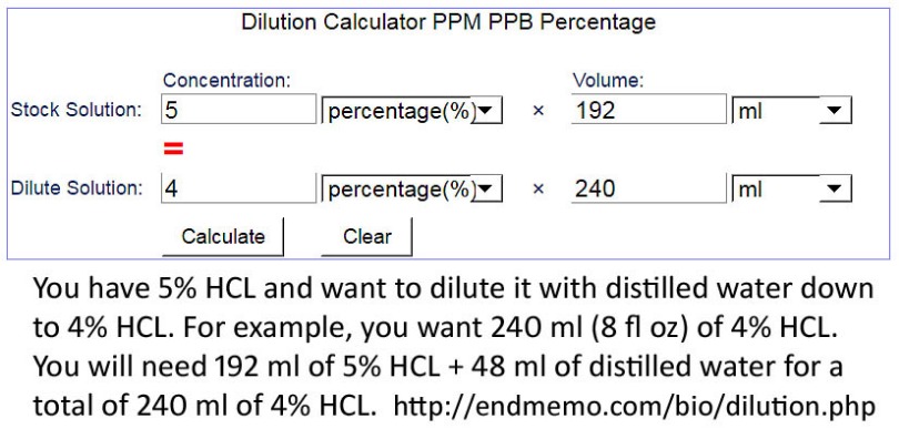 Replied by IslandEternal on topic about HCL, can I get 4% HCL from 30% HCL?