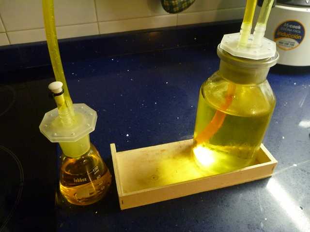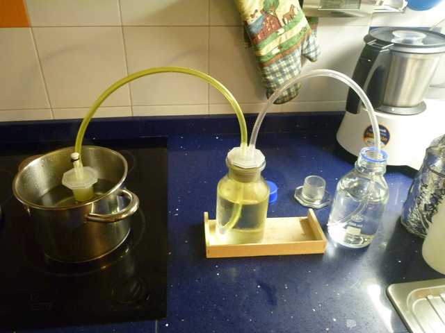 You may need a glass or plastic measuring cup, and I use a shot glass for testing. And I make it in my kitchen under my stove venting fan.