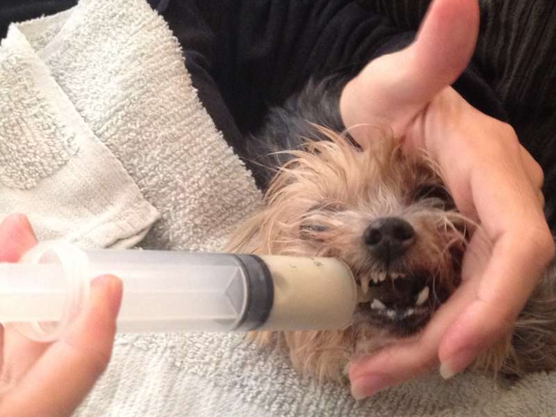 Go to a Feed Store in your area, and get a large size syringe... and place to water or the MMS in there, and kind of force feed it down her throat... taking about 5-8 minutes to give her hydration or a dose of MMS... we did that with out little Yorkie... (for Clay , Diatomaceous Earth and MMS).... she was fine with it after a while.
