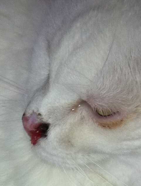 We have a cat that is albino and has skin cancer.