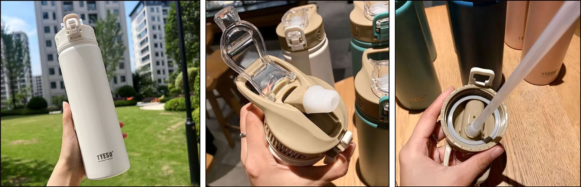Tyeso 600ML Stainless Steel Thermos Bottle With Straw filled with 500ml of diluted CDS.