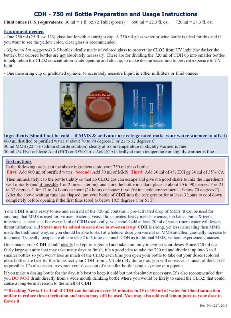 - Every ml of CDH contains 1 drop of MMS, so 1 drop of MMS = 1ml of CDH