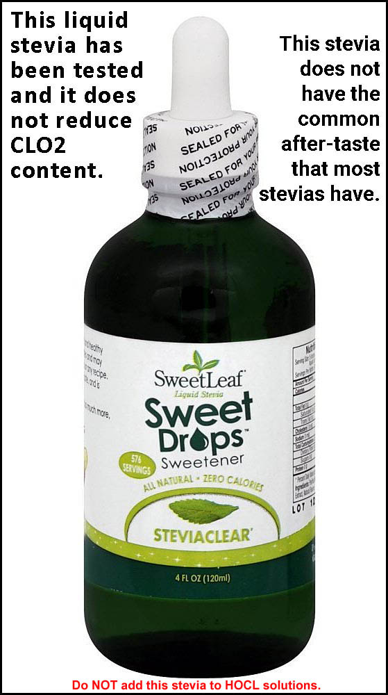 These liquid stevia drops improve the taste of MMS1 and do not reduce CLO2. You can add a few drops to each hourly dose.