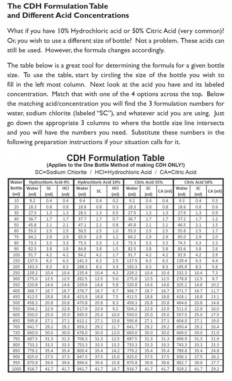 At the bottom of page 5, a simple method to make One Bottle CDH is described and a photo shows the kitchen utensils that were used. You would only need to buy the bottle, some SC and 4% HCL.