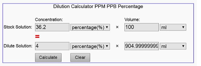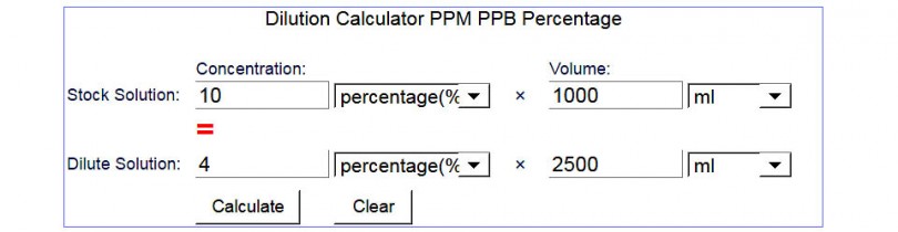 The Dilution Calculator (PPM, PPB, Percentage) at