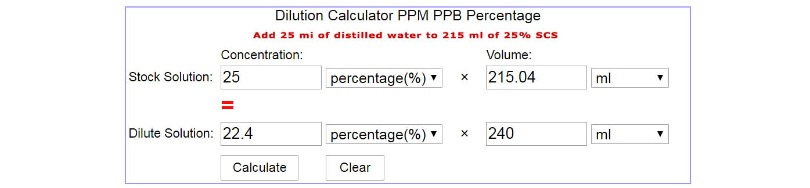 How to get a 25% Sodium Chlorite solution diluted to the proper amount