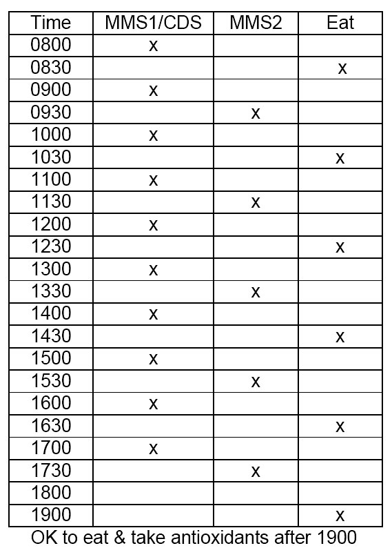 On the third day, according to Protocol 2000, I start taking MMS2 every other hour.