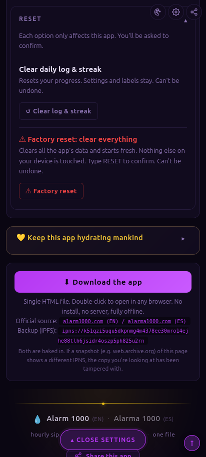 Hydration shouldn’t cost money or compromise privacy. Alarm1000 proves that a simple, useful tool can be free, transparent, and yours to keep.