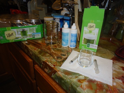 Set up for the pint jar - I use separate syringes for the MMS and for the CA so that they don't contaminate the storage fluids.